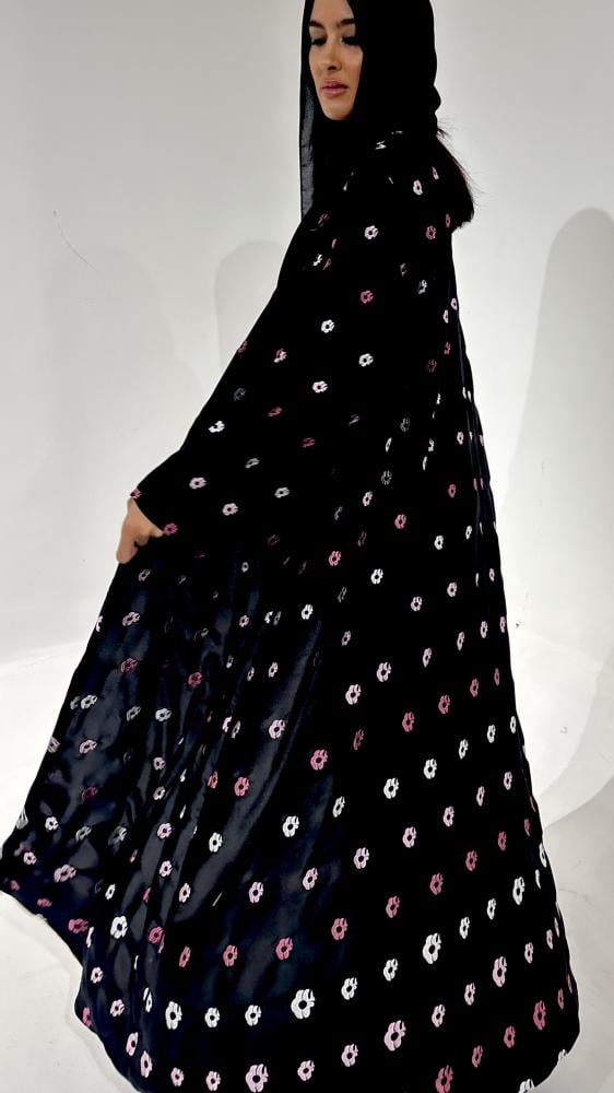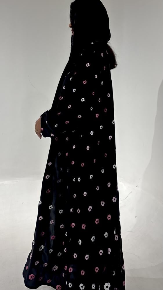 عباية بلاك بيري بتطريز ورد من فوزانا — لأن الأناقة الحقيقية تنبت من تفاصيل الورد.