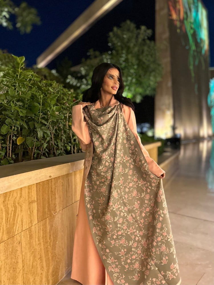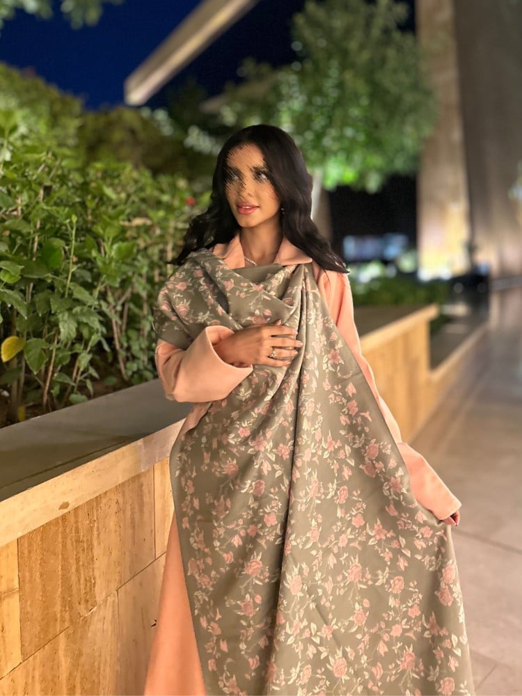 عباية جوخ زهر مع شال، من أجمل موديلات عبايات شتاء 2024 العصرية، مميزة وأنيقة، مصممة وفق قصة بليز A، بجيوب كبيرة، وشال بنقوش، يمكنك فكه وتركيبه على العباية متى شئت.