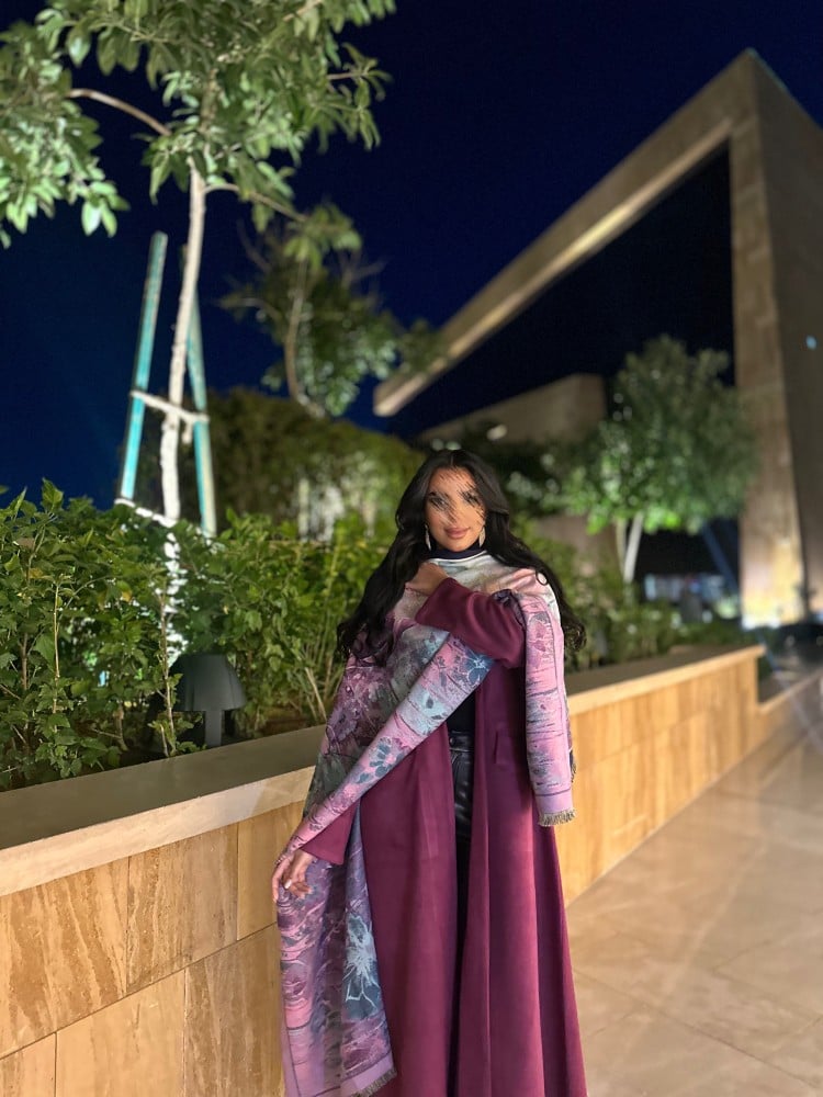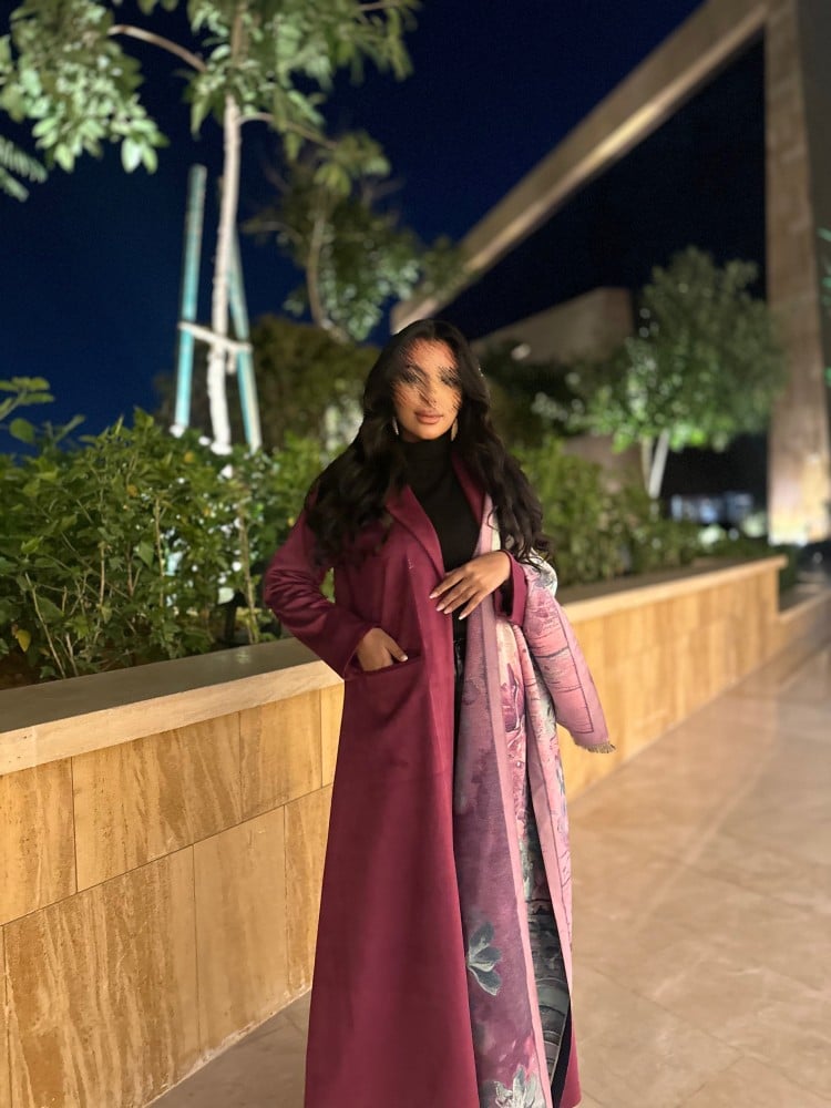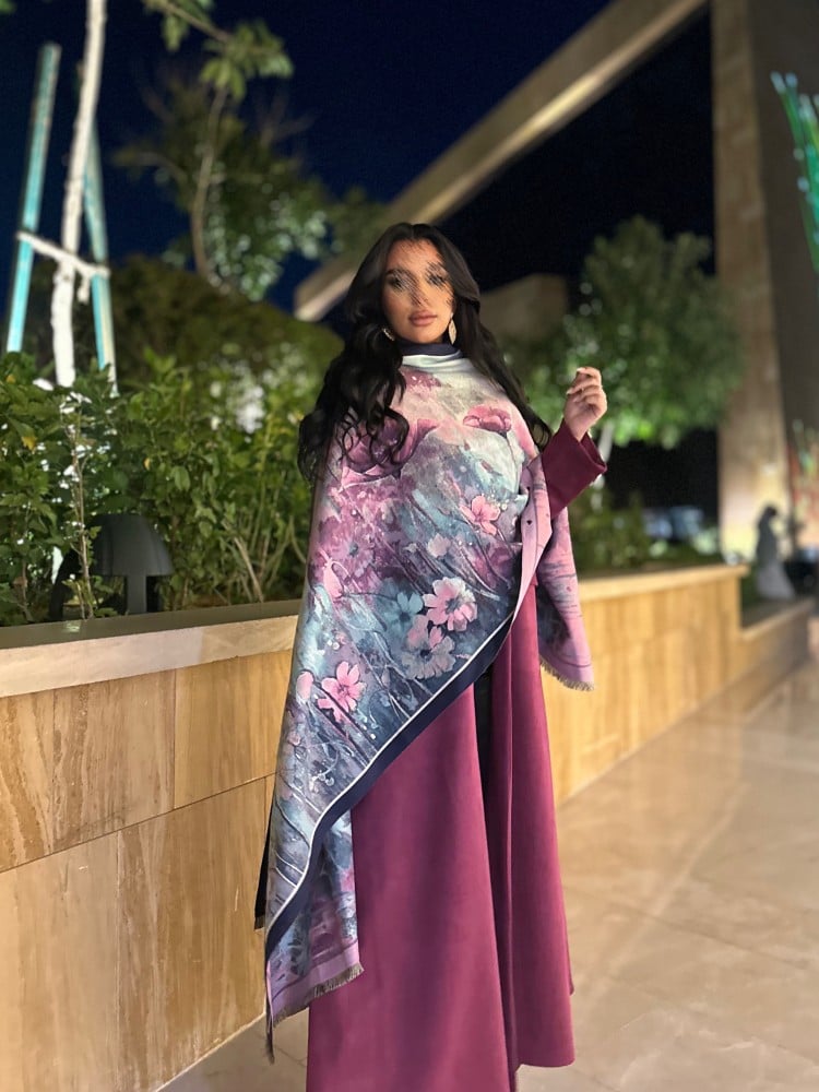 عباية جوخ موف مع شال، مميزة من كولكشن عبايات الشتاء 2024، مصممة لتكون بليز وفق القصة A التي تناسب مختلف الستايلات، منسوجة من الجوخ السميك باللون موف، ويأتي معها شال بنقوش قابل للفك والتركيب على العباية حسب الرغبة.