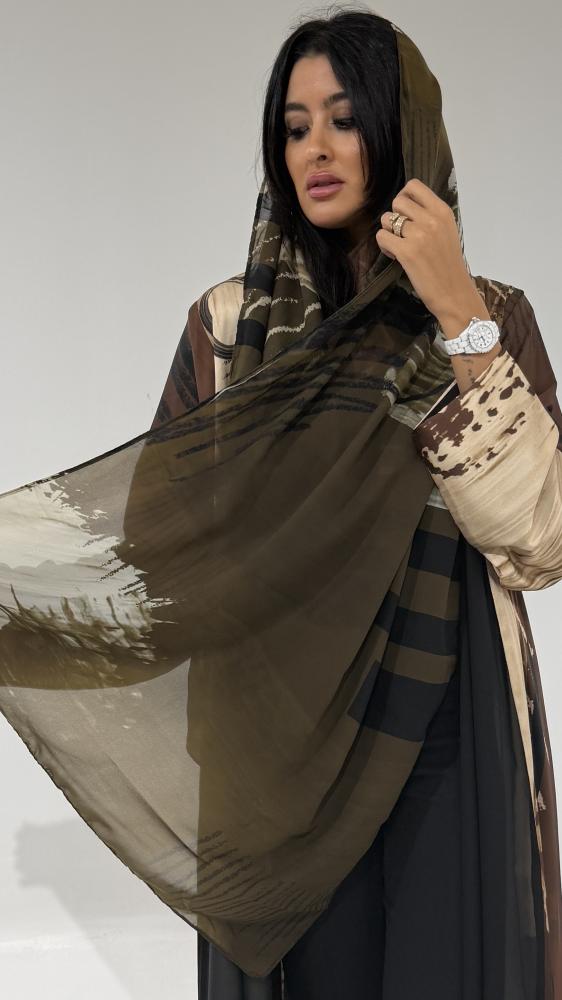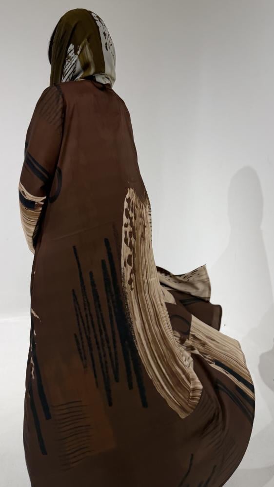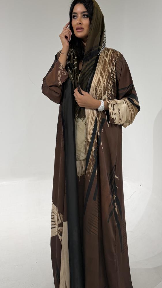 الحل هو عباية حرير بني من فوزانا — قطعة تجمع بين النعومة الراقية والتصميم العصري بطباعة خاصة تخطف الأنظار.