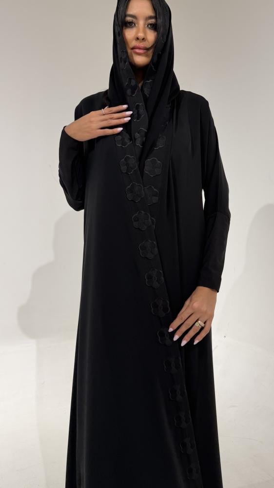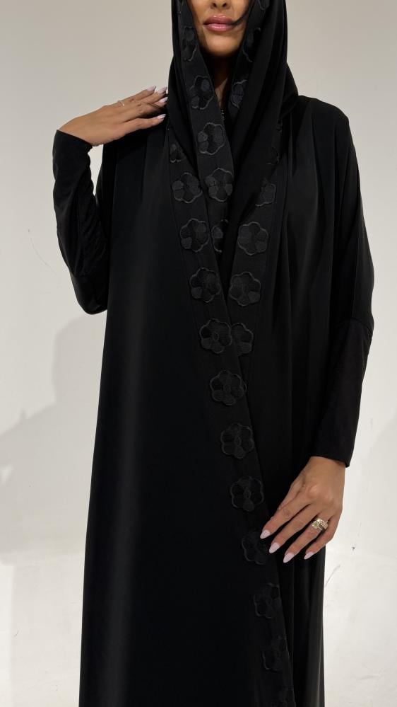 عباية سوداء ملكية مطرزة من فوزانا — لأن الأناقة في فوزانا تُروى بخيوط من الفخامة الهادئة اكتشفي ايضا مجموعتنا من العبايات نص كلوش.