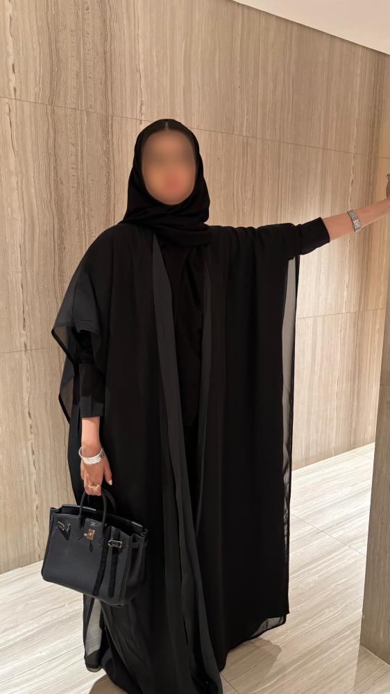 عباية كلوش بلاك بيري مع شيفون أسود وشال مثبت تجمع بين أناقة اللون الغني والأسلوب العصري، لتمنحك إطلالة راقية ومميزة في المناسبات الخاصة أو الإطلالات اليومية الفاخرة. تصميم الكم الستارش يمنح العباية لمسة عصرية وفخامة، بينما الشال الأسود المثبت يكمل الإطلالة بأناقة متكاملة.