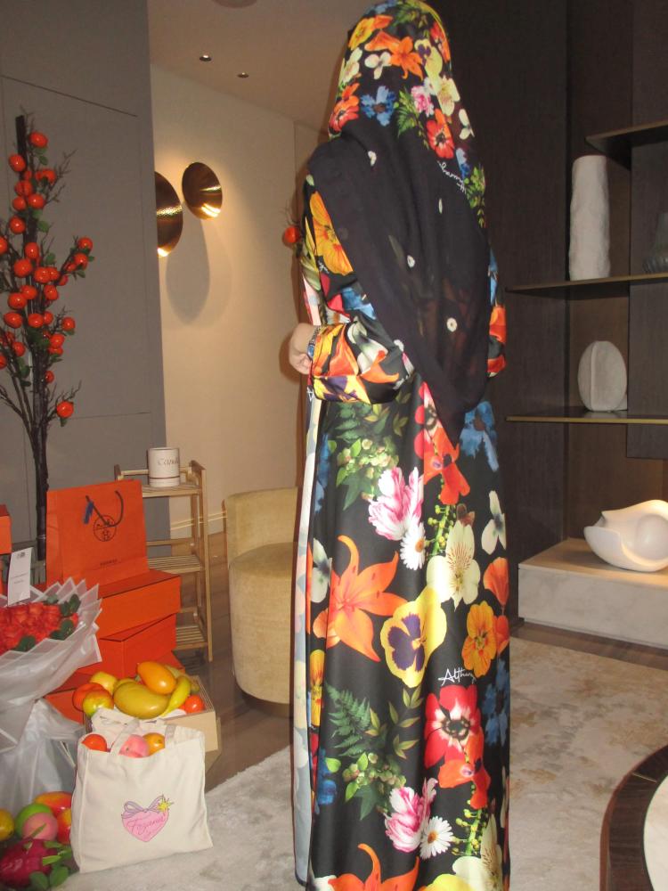 عباية مفعمة بالحياة بفضل نقشة الورد الملوّنة التي تجمع بين الأناقة والرقي، مع قصة نصف كلوش تمنحك حرية وانسيابية في الحركة دون أن تفقدي لمسة الفخامة.